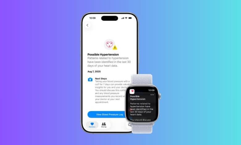 تُعدّ مزية تنبيهات ارتفاع ضغط الدم (Hypertension Notifications) من أبرز المزايا الجديدة التي أضافتها آبل إلى ساعاتها الذكية عبر نظام watchOS 26. وتتيح لمستخدمي الساعة متابعة مؤشرات ارتفاع ضغط الدم باستمرار دون الحاجة إلى زيارات طبية متكررة. ولا تُعد وسيلة للتشخيص أو العلاج أو إدارة ضغط الدم بنحو مباشر.